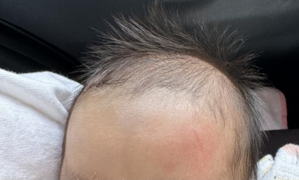 頭ではなく左側のおでこ部分ですが脳出血など心配になります。ミルクを飲んだ後は昼寝をしたり、いつも通りの様子にみえます。