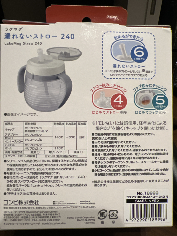 説明書には『4ヶ月で初めてストロー』『5ヶ月で初めてコップ』『6ヶ月で漏れないストロー』※初めてストローと初めてコップは別売りです との記載が...