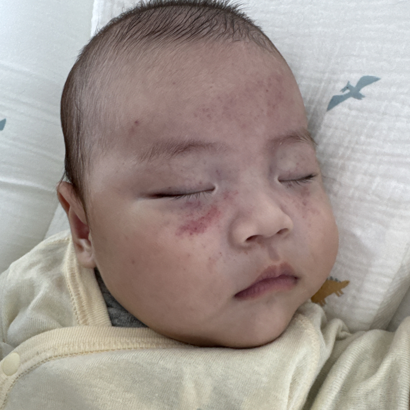 こんにちは。突然赤ちゃんの顔に内出血が出ました。