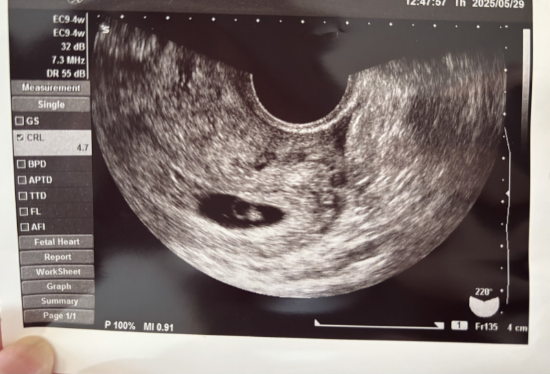 前回確認出来なかった胎芽を確認することができたのですが、4.7mmと週数的には小さいと言われました。