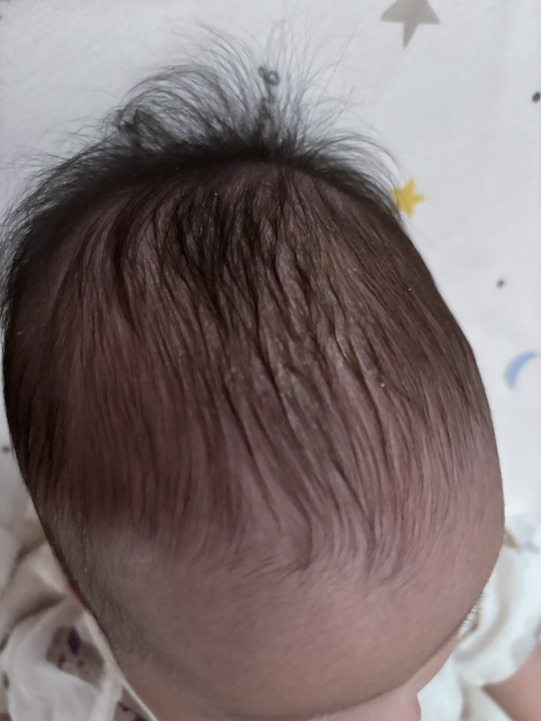 大泉門のところなどは触るのが怖く、皮脂が残ってしまっています。