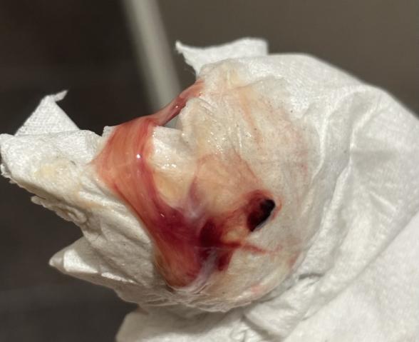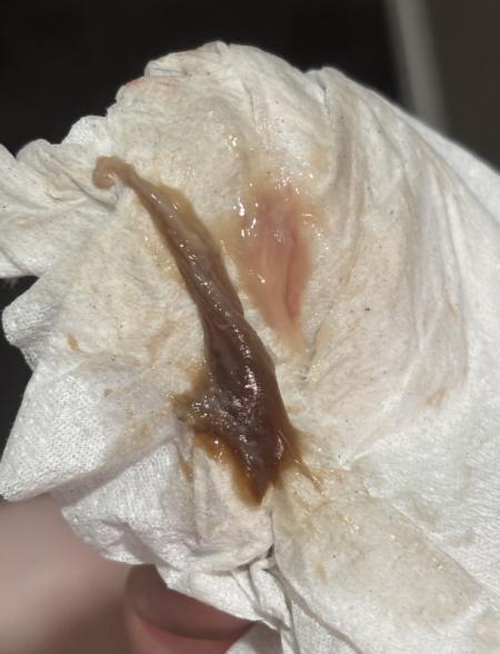 先週の内診後にも茶おりが出ましたがもっと乾燥した小さなカス?みたいなものでした。