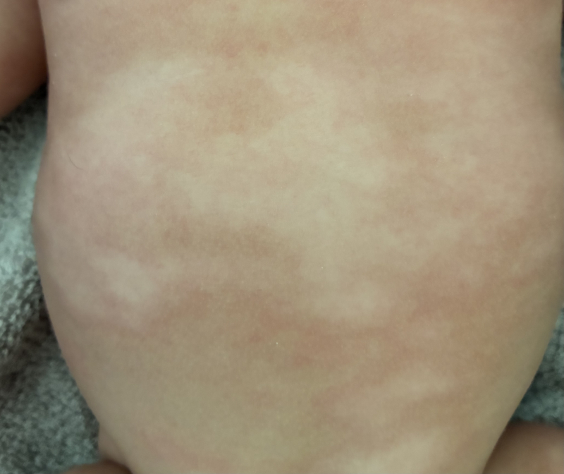 生後3ヶ月の子供のお腹と足に