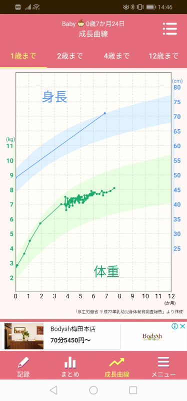 ママさんからみると、体重増加が緩やかに感じるかもしれませんが、中・長期的に見れば、しっかりと増えていますよ!