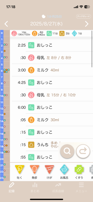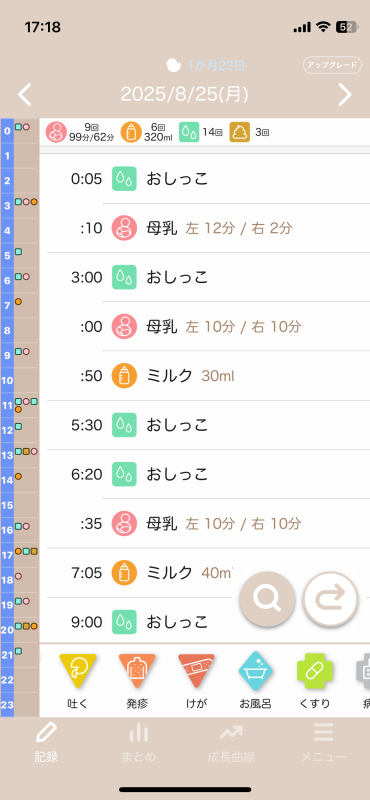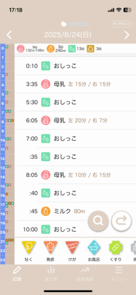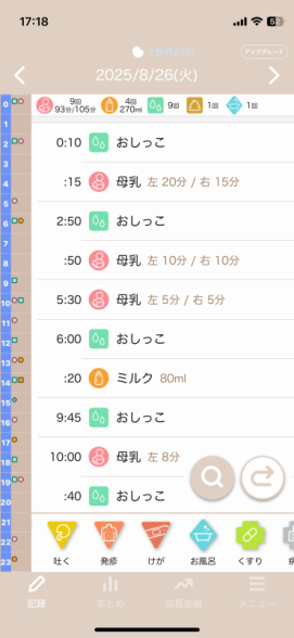 (最近の1日の授乳時間とミルク量を添付しました。)