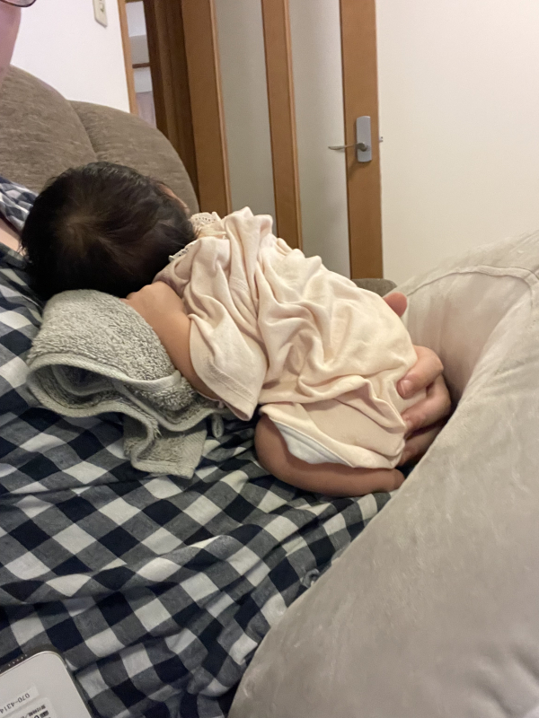 夜がなかなか寝ず、縦抱きだと寝てくれるようになりました。
