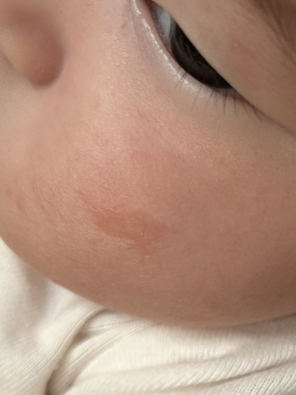 添付画像の傷なのですが、3日前程に朝の授乳に起きてきたときに気づきました。