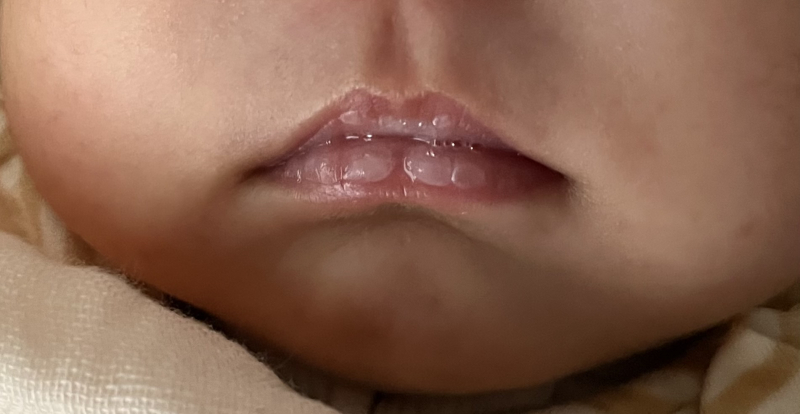 お子さんの唇に水ぶくれのようなものが見られご心配なのですね。