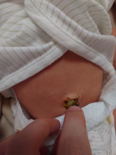 生後8日です。へその緒はまだ取れていませんが、臭いが気になります。昨日あたりから授乳の距離でも臭いに気づくくらいの強さで臭っています。