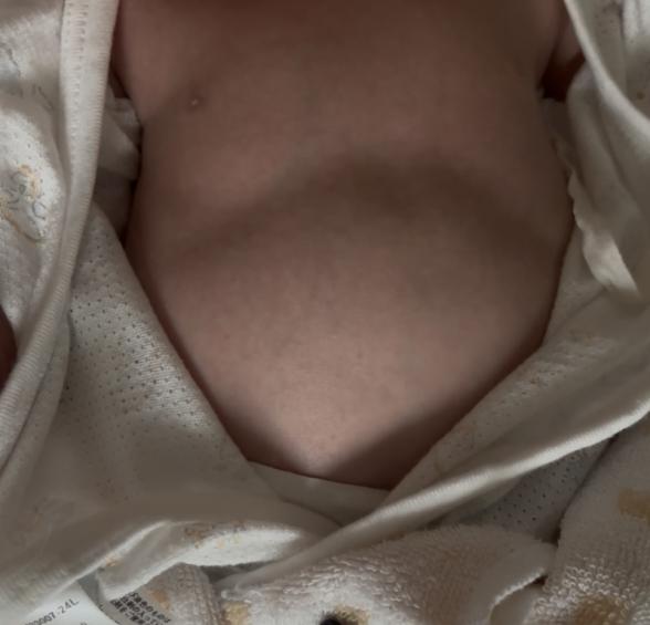 呼吸自体もお腹が大きく膨らむからか、胸の辺りは沈んでるように見え、調べたところシーソー呼吸のように見えます。