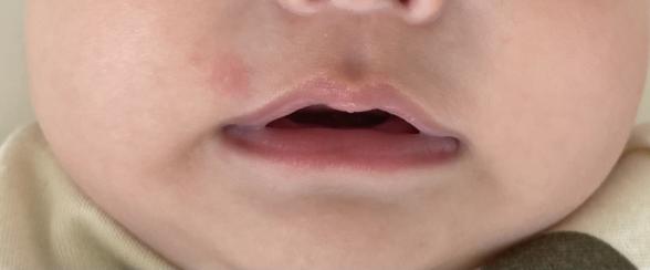 口元はりんごで食後3時間後にお昼寝から起きたらできていました。