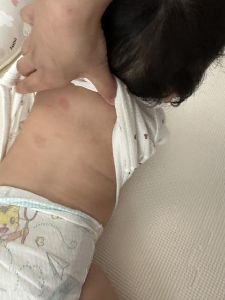 1日経って皮膚を見てみると、前日と赤みの位置が若干変わっている気がします。前胸部は消失、背中、腰にあります。