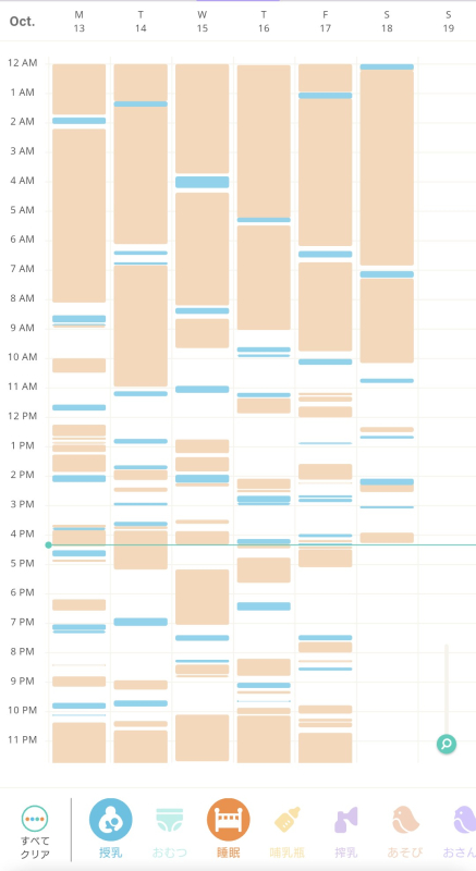 2ヶ月半ほどから夜まとまって4~5時間ほど寝てくれるようになりました。基本的には私のおっぱいの張りを解消するため夜間授乳を1回行っており、授乳で起こす事をしなければ7時間以上寝ることもあります。