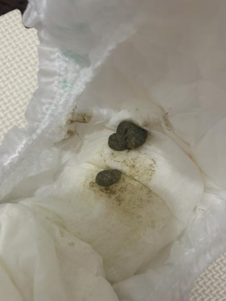 お写真の様子ですと大腸などの下部消化管に便が長く貯留するとお写真のようなコロコロとした兎のフン様の排便がみられます。自力で出ない場合は、綿棒浣腸で、出口付近の硬い便を早めに出してあげてみくださいね。