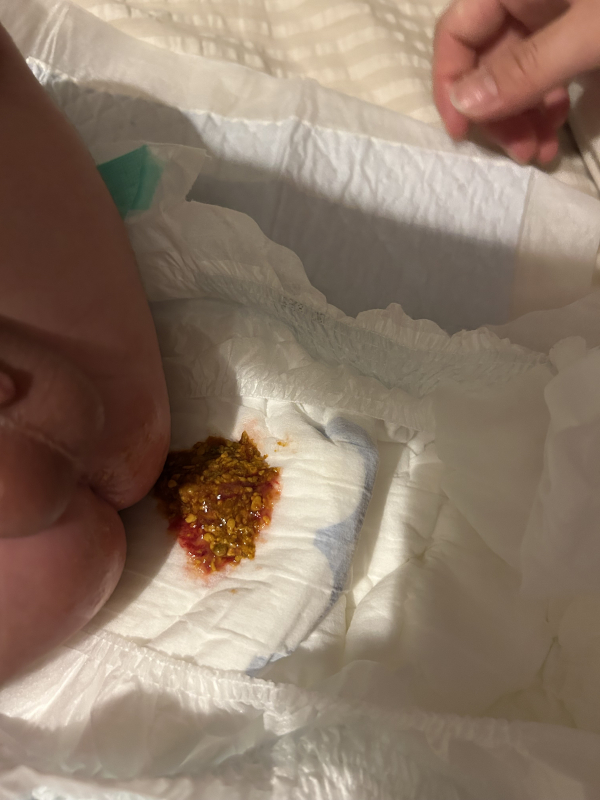 3日前くらいまで便秘が少し続いてて綿棒浣腸1日1回して出てて、最近ちゃんとまた出るようになったんですけど、昨日の夜、便に赤い血が混ざってて、翌朝も続けて血混ざりの便が出てて本人は元気でミルクもちゃんと飲めてはいるんですけど、心配で大丈夫なのかなと。