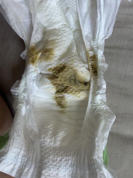 今朝お昼寝の後にオムツを変えると、初めて見る色をしていました。