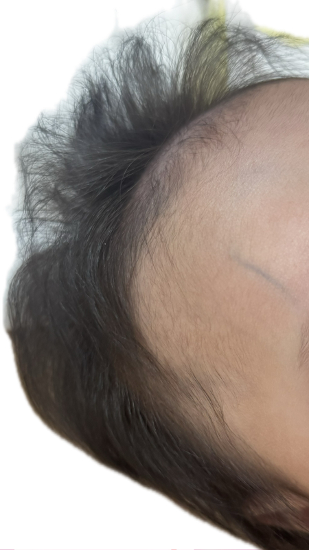 右の眉毛の上あたりにこのように血管が濃いところがあります。