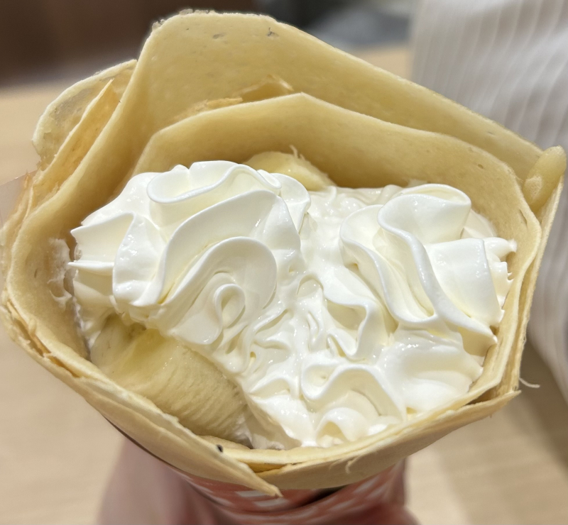 昨日ショッピングモールの中にある、マリオンクレープというクレープ屋さんで「バナナクリーム」のクレープを食べました。