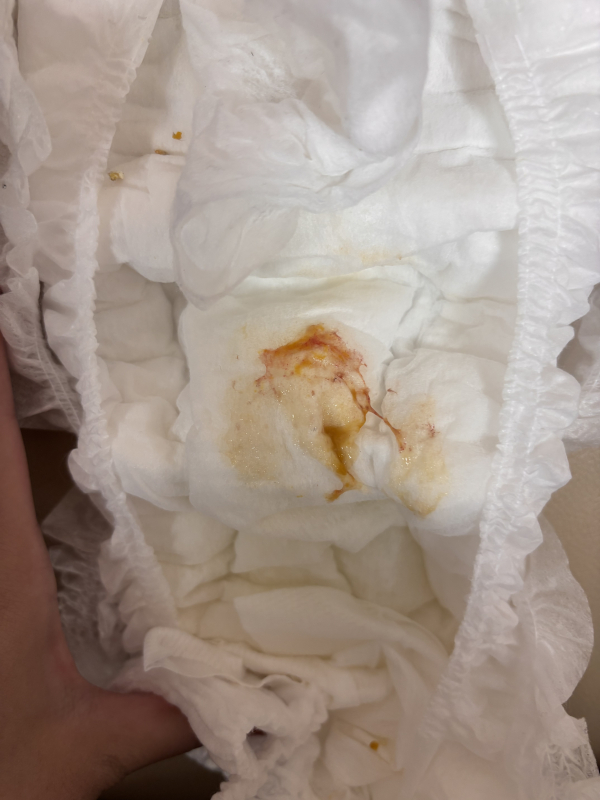 お子さんのウンチに赤い粘液が混じっていたことがご心配になりましたね。今はまだ授乳をなさっていますでしょうか?もし母乳育児をされていらっしゃる場合には、母乳中に含まれる乳糖が腸管の中で発酵し、大量のガスが発生することにより、便は強い酸性になると言われています。強い酸性や腸管ガスの刺激によって、腸管粘膜が出血を起こすことがあると言われています。このため、母乳栄養をしているお子さんには、ウンチの中にポツポツとした点状の血液や、糸を引いたような線状の出血をみることがありますよ。基本的には、お子さんの機嫌が良く、おっぱいの飲みもよく、元気があり、体重が増えていればあまりご心配ないと言われています。一時的なものと言われていますが、もし、出血が続く場合や赤い粘液が増えてくる、食欲が低下する、元気がないなど、お子さんの様子に変化があれば、ウンチの付いたオムツをご持参の上、小児科でご相談いただければと思います。