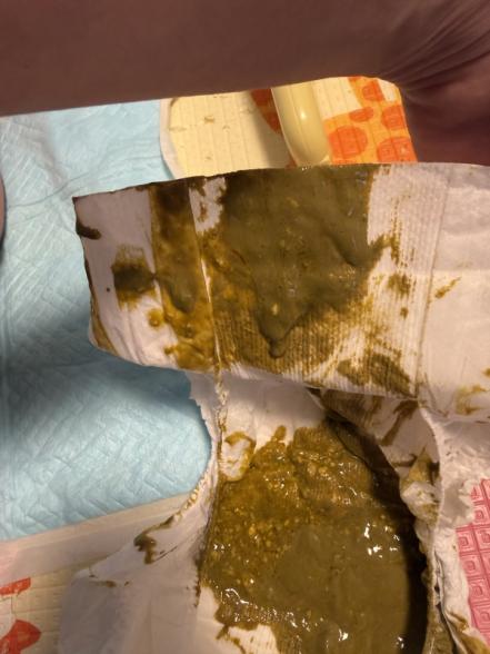※画像を添付いたしますのでご確認していただければと思います。一度写真を撮る為におむつから手を離した為上の部分に広がってしまい血が上の方についてますので見えづらいと思われます申し訳ございません。