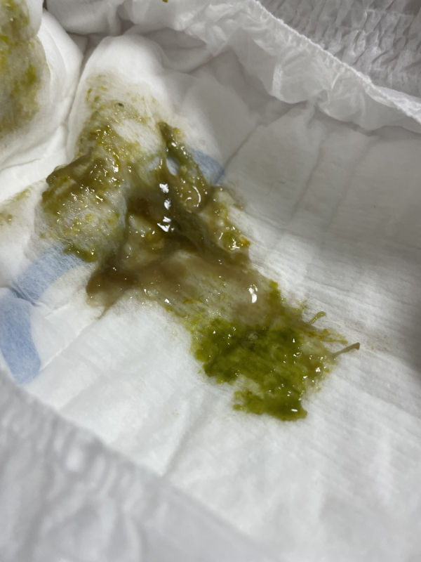 産まれてからは黄色のうんちばかりだったのですが1週間前くらいからずっと深緑や緑色のうんちばかりで腸に長く入ってたうんちなのかなっと思っていつも通り普通に過ごしてたのですが今日鼻水のようなすごく粘り気のあるうんちが混ざってて緑でもないような色のうんちだったのでコレは大丈夫なのかと心配になり相談させてもらいました。