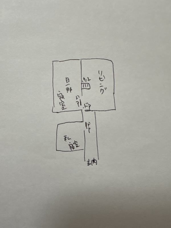 間取り的にリビングに子供がいてその隣の部屋で旦那の寝室があり(ここは電気をつけて寝ています)ドアを挟んでわたしの寝室になっています。