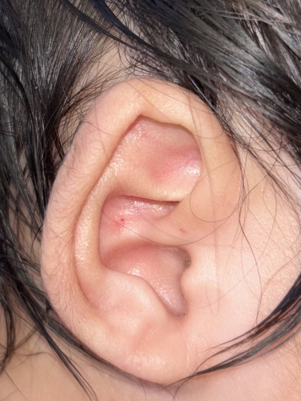 ですが、お子さんの場合には、髪の毛が、耳付近に当たり痒みが出やすかったり、すでに赤みがある場合には、痒みがずっと生じている可能性もあるのかなと思いました。