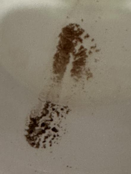 黒っぽい茶色の出血にぼろぼろカスみたいなのが