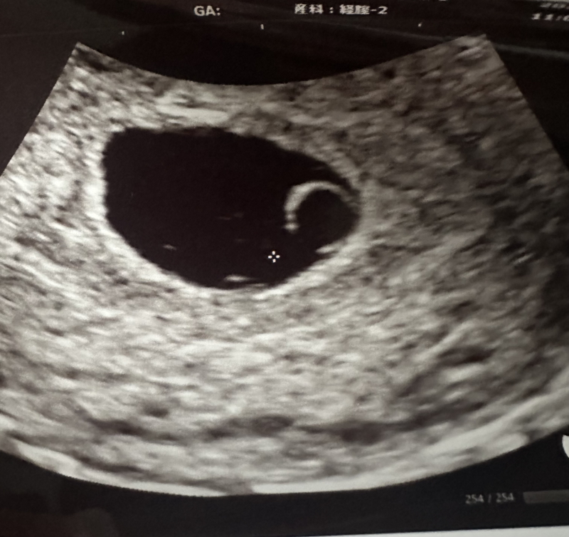 (エコー写真7週目)(2枚目はトイレに付いていた茶色いカスみたいなものです)