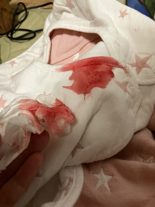 赤ちゃんの吐き戻しに、血が混じった感じがあり悩まれていましたね。ご心配になられましたね。