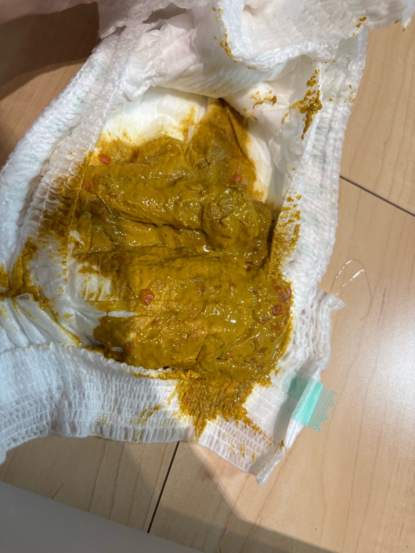 かなり下痢に近い柔らかいうんちが出たため、離乳食は朝のみにしました。(うんちの画像添付しています)