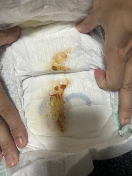 生後2か月の男の子ですが、今日だけで便を7回していて、そのうち2回ほどに少量の出血がありました。