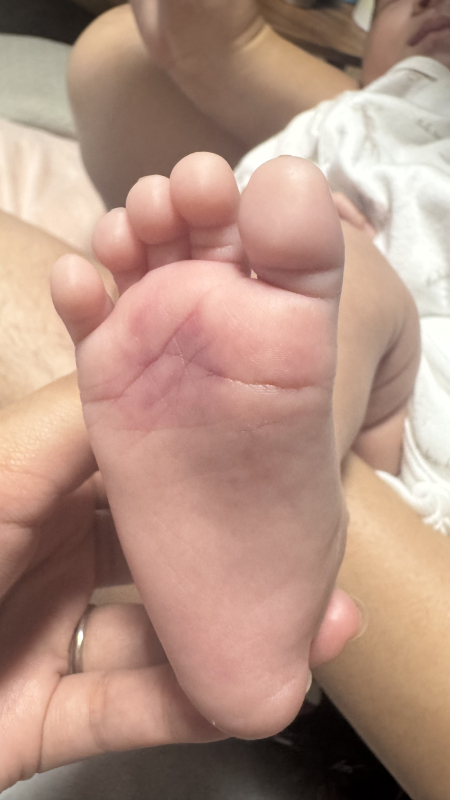 足の甲もすこしシワになって赤くなっているので折れたり何かなっていないかが心配です。