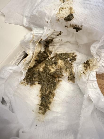 現在2ヶ月で、ミルクを使用しているのですが、色々なうんちが出すぎてこのうんちが大丈夫なのか、異常がないか心配です。少し深緑すぎる気がするのですが、大丈夫でしょうか?