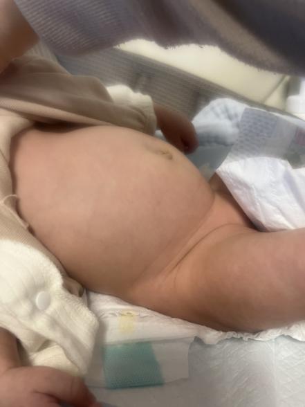 もうすぐ2ヶ月になる息子ですが。母乳を飲むと写真のようにお腹がすごく膨れます。写真は授乳後1時間半くらい経っているのですが、それでもかなりパンパンです。