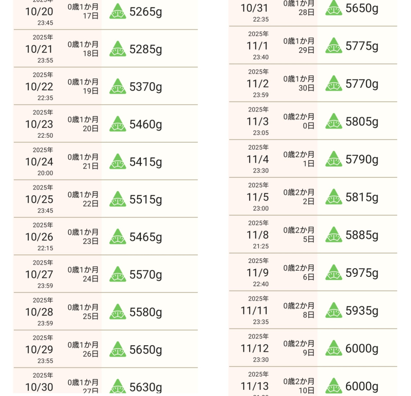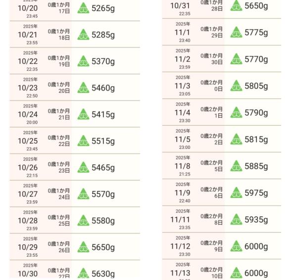 授乳で140-160㎖飲めていたのが、最近は測っても50-70㎖が多いです。