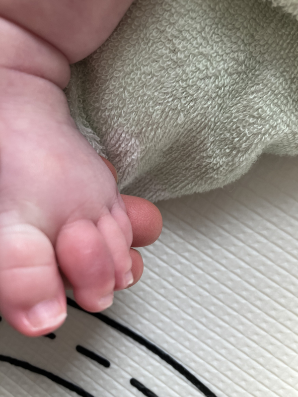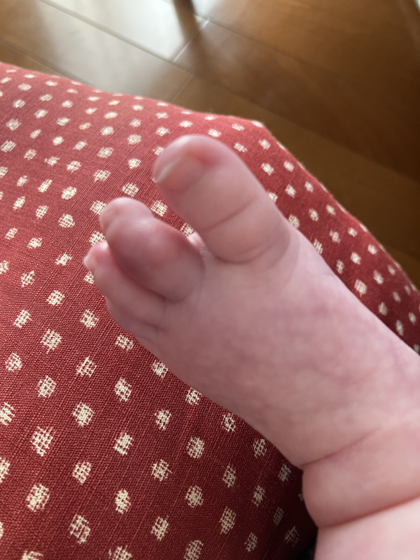 息子の足の様子を見ながら、靴下を履かせる等していきたいと思います。