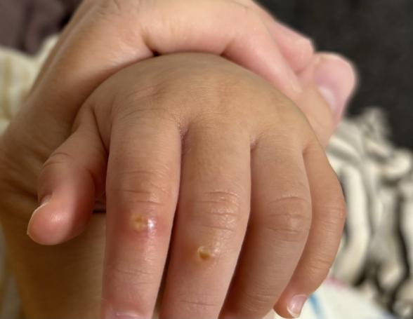ですが、お写真を拝見しますと、やはり吸いだこの周りが赤くなって炎症しているようにお見受けします。指はどうしても周りのさまざまなものを触りますので、不潔になりやすかったり、ばい菌が入りやすかったりすることもあります。酷くなってきたり、赤みが広がってきたりするのでなければ、まずはワセリンを塗っていただいて保護なさるといいかと思います。ワセリンはお子さんのお口に入っても問題ないと言われていますので、ご安心くださいね。もし、ワセリンで保護していただいても、なかなかよくならない、赤みが広がってくる、ジュクジュクしてくるなどがあれば、小児科か皮膚科でご相談なさってみてくださいね。