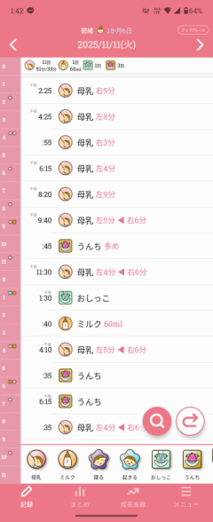 授乳間隔をあけるために、泣いても毎回あげるわけではなくしたら、昨日8回で1日左29分、右27分+ミルク150(内1回はほぼ吐き戻し)
