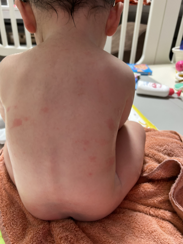 タイトルの通りで、7ヶ月ころから背中や腕、太もも、お腹の所々に発疹が出るようになり、アトピタローションを普段お風呂上がりと朝起きたときに塗っていますが、良くなりません。