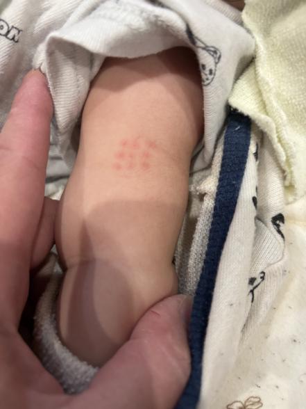 昨日bcgの予防接種受けてきたのですが、一箇所だけしか注射されてないのですが、調べると9箇所残ってれば大丈夫と書かれていましたが上の子たちも同じ先生に打ってもらって9針を2回してもらってます。先生に聞いたほうが良いのでしょうか?それとも様子見でよろしいのでしょうか?左の写真が昨日の写真で、右が今日の写真です。