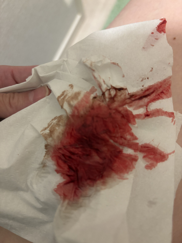 今朝になり、出血はいかがでしょうか?