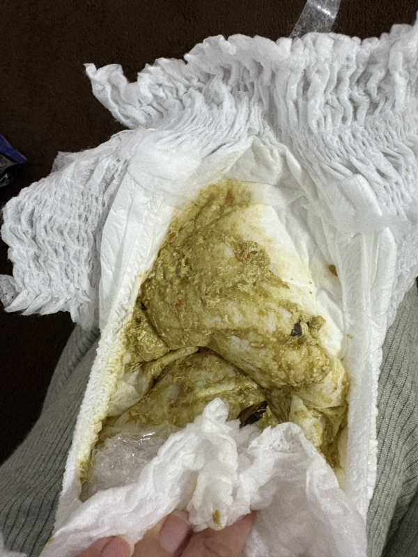 1週間前に熱はないですが鼻水と咳をしウンチも緩くなりました。それまでは離乳食を3回にしたら便が固くなりウンチをするのが大変そうだったのですが鼻風邪と共に緩くなり1日に何度もあったのでお尻も赤くなってしまいました。何日か続き少し便の回数も少なくなり緩さも無くなってきたと思った矢先にまた今日から少し緩めに。