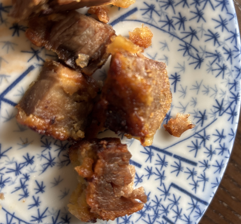パサパサで衣ではなく肉の部分が暗い色になった感じです。