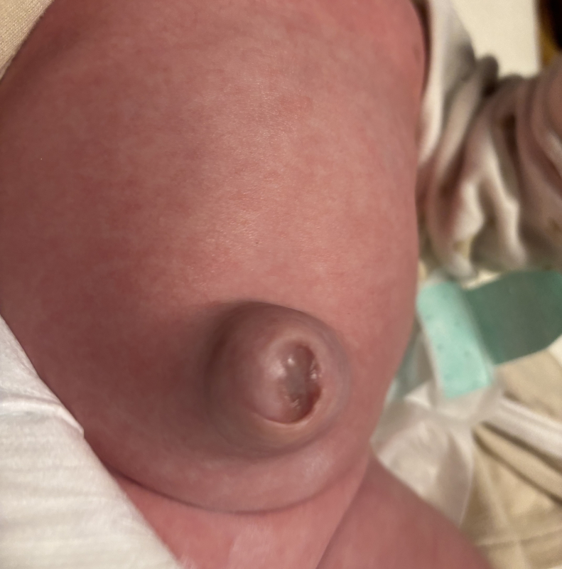 1ヶ月検診後、1週間しないうちに少し悪化し、パッと見臍ヘルニアかな…と思うくらいになりした。