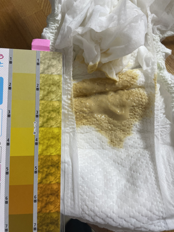 入院中はマスタード色だった便が気が付いたら薄い黄色になっていました。