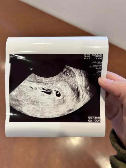 本日計算上では5w5dで初診でした。エコー写真がこちらだったのですがこれはなんでしょうか?こちらも緊張して言葉少なだったためか、お医者さんの方も特に何も言うことなく一枚こちらを渡され、また2週間後に来てくださいとしか言われませんでした。帰ってからこの二つ写っているものはなんなのだろう?と気になったのですが次回までの診察の2週間が長過ぎて…もしわかりましたら可能性だけでも教えていただけるとありがたいです。