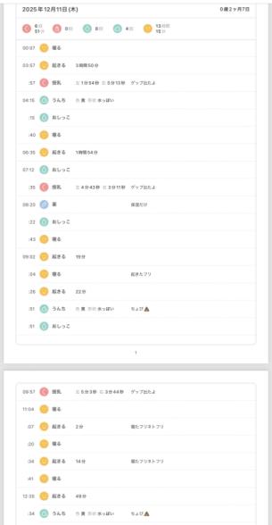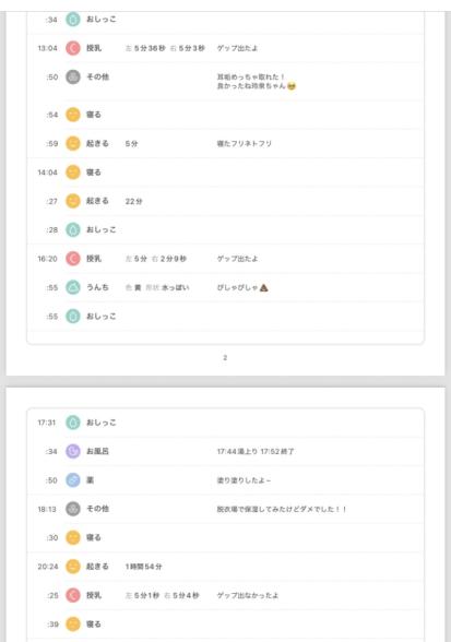 起こしていた時の1日のスケジュールと、夜間寝かした時のスケジュール両方添付させて頂きます。