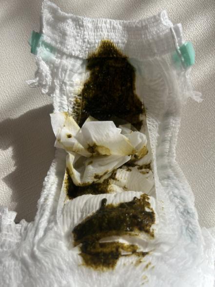 昨日の朝から急に便の色が焦茶に近い?深緑色になりました。(写真あり)離乳食始まってますが前日までにほうれん草などは食べておらず、玉ねぎ・じゃがいも・おかゆ・りんごを食べています。