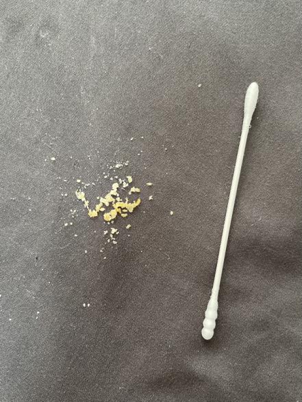 耳垢はかなり乾燥しておりベビーオイルに浸した綿棒でないと取れないレベルです。
